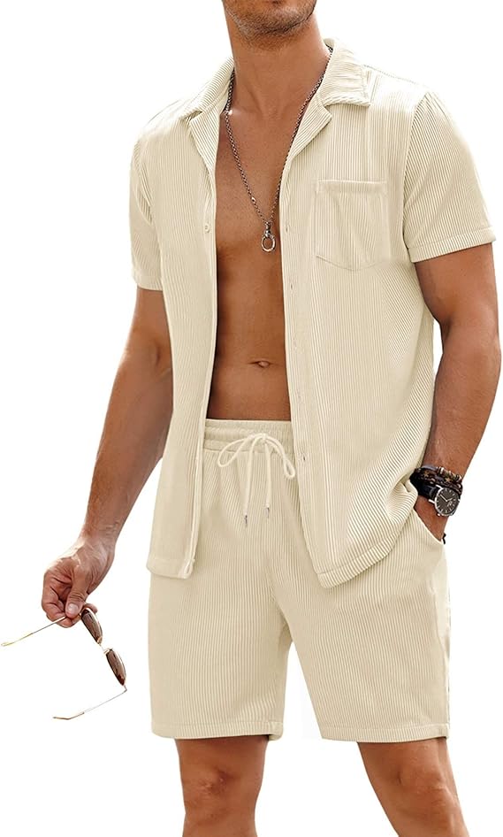 • Summer Fashion: This mens 2 piece short set marks the beginning of the vacation spree! The unique pleated design exudes a vibrant, youthful, and trendy aura, crafting the perfect summer casual look that’s both eye-catching and comfortable
